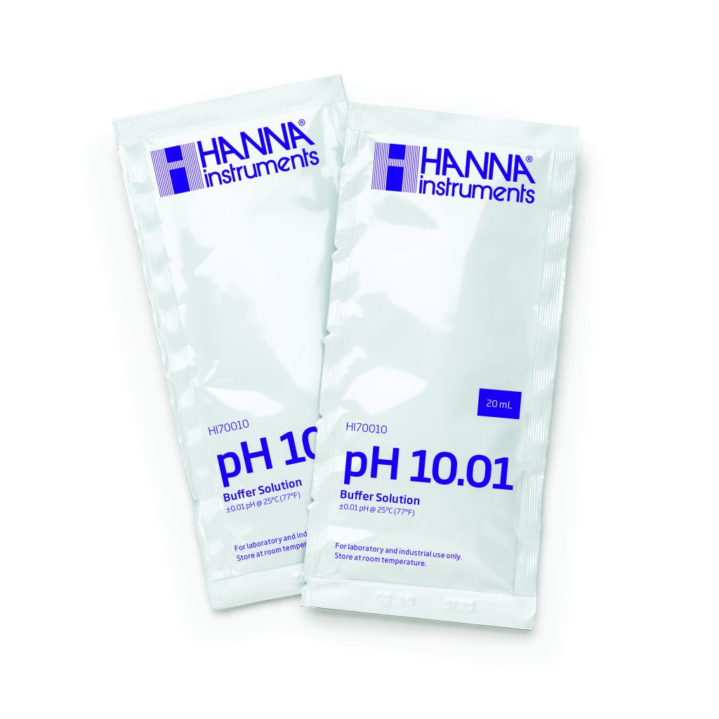 Durante la calibración, los buffers de pH reconocidos son compensados por temperatura por el instrumento con el fin de considerar la variación del pH de estas soluciones debido al cambio de la temperatura. Por ejemplo, un buffer de pH 10.01 tiene ese valor únicamente a 25 °C. La tabla con la variación del pH en función de la temperatura se encuentra impresa en la etiqueta de cada buffer de pH.