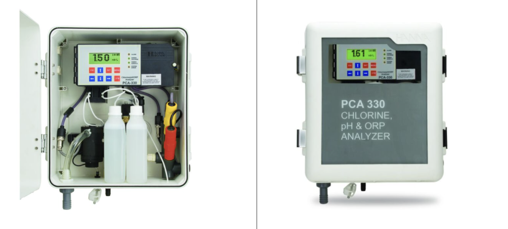 El control del cloro libre y del pH en procesos de electrólisis salina puede realizarse de manera eficiente mediante el analizador en línea PCA320 o PCA340 de Hanna Instruments, el cual permite la medición continua y simultánea de ambos parámetros críticos. Este equipo emplea análisis colorimétrico automático para cloro libre y electrodos industriales para pH, garantizando lecturas precisas y repetibles incluso en condiciones de operación exigentes. Adicionalmente, los PCA320 y PCA340 disponen de salidas de control y alarmas configurables, lo que permite su integración directa con sistemas de automatización mediante comunicación Modbus RS485 integrada.
