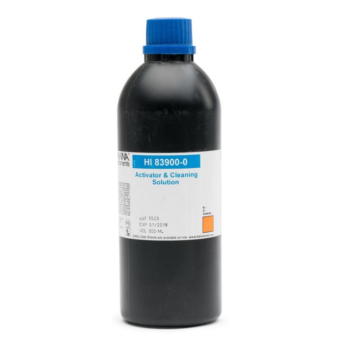 El HI83900-25 es un activador de reemplazo y una solución de limpieza hecho para ser utilizado con el Lisímetro de Succión de Hanna HI83900. Para proteger contra los residuos del suelo y de los contaminantes que pueden afectar los análisis químicos posteriores, la solución debe ser utilizada con prontitud y en un programa de mantenimiento regular.