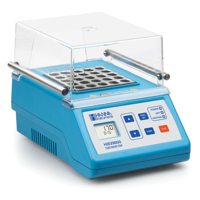 El HI839800 es un termorreactor con capacidad para 25 viales para la determinación de DQO en aguas residuales.