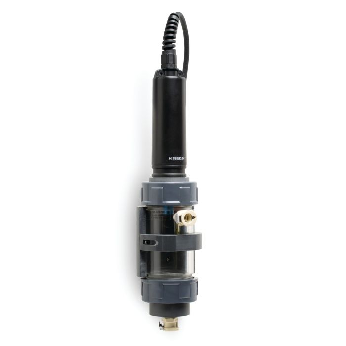La celda larga de flujo de liberación rápida HI7698297 se utiliza para el muestreo de bajo flujo de los parámetros de calidad del agua. La celda de flujo está conectada a una bomba sumergible que extrae agua de un pozo o de una fuente de agua superficial para medir directamente con la sonda HI769829. Usar la celda de flujo es fácil, simplemente se retira la capa protectora de la sonda, se inserta la sonda a través de la tapa de bloqueo con el o-ring y se enrosca la celda.