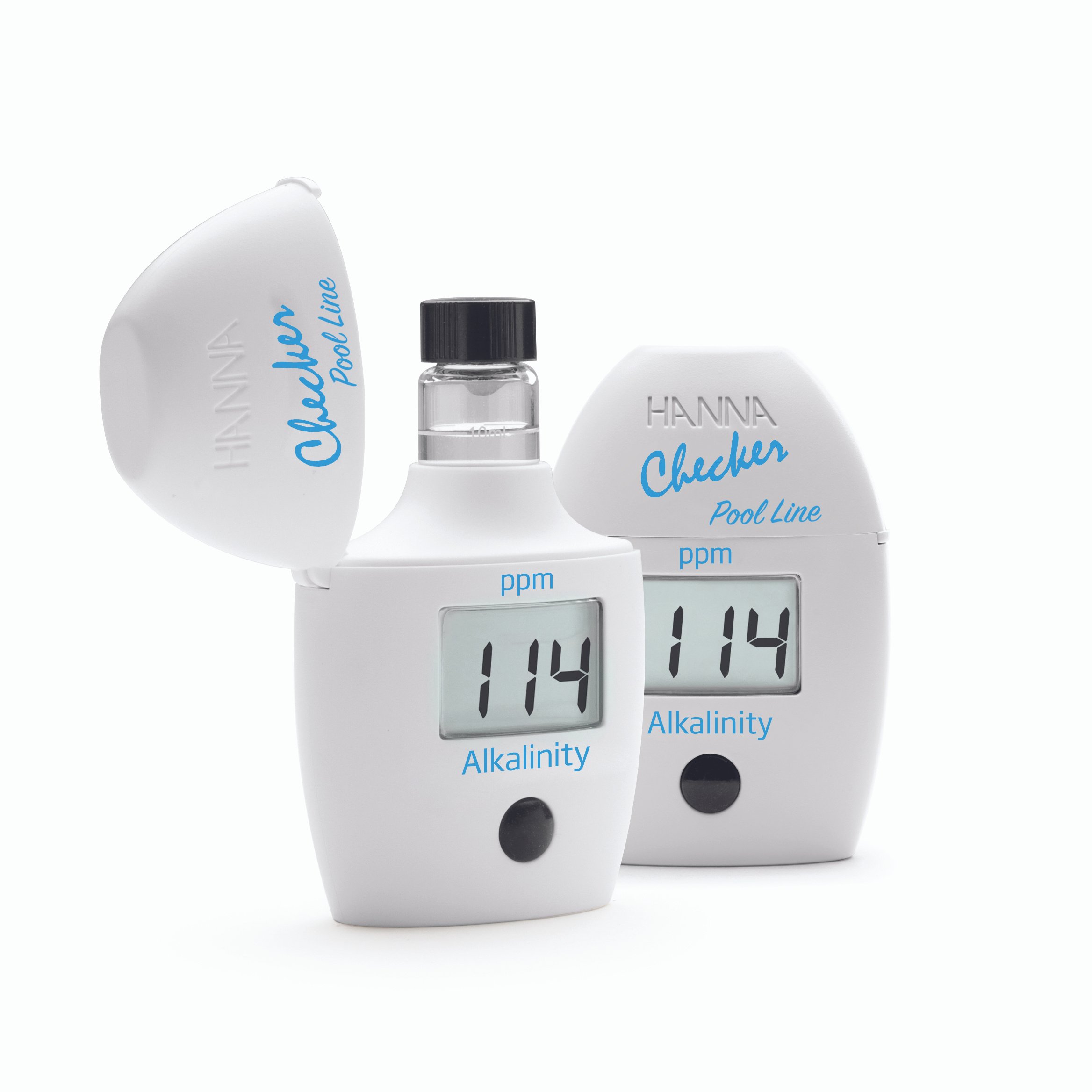 El Checker? HC Colorímetro Portátil de Alcalinidad Línea Piscina HI7754 está diseñado para medir la alcalinidad en piscinas, jacuzzis y spas. La alcalinidad es un parámetro muy importante en el control de la química del agua de la piscina. La alcalinidad es la capacidad amortiguadora de una solución para resistir al cambio de un ácido o una base. Esto puede ser un desafío cuando se usan formas comunes de cloro, ya que como base cuando se agrega el cloro, el pH aumentará. A medida que el pH del agua aumenta por encima de pH 7.4, el cloro se vuelve predominantemente en forma de hipoclorito en lugar de ácido hipocloroso, a medida que el pH desciende desde pH 7.4. El ácido hipocloroso es 100 veces más eficaz como desinfectante que la forma de hipoclorito. Cuando el agua tiene poca alcalinidad, el pH aumentará a medida que se agregue el cloro. Cuando hay una alcalinidad adecuada, a medida que se agrega el cloro, la base se absorbe y el pH permanece igual. Monitorear la alcalinidad es importante para mantener un pH estable de una piscina, jacuzzi o spa.El estilo contorneado de estos checkers encaja perfectamente en su palma y bolsillo y la gran pantalla LCD es fácil de leer. La función de apagado automático asegura que la vida útil de la batería no se agotará si se olvida de apagarlo.Para realizar una medición con el instrumento se coloca una muestra de agua en una cubeta y se pone a cero el medidor. A continuación, se agrega un reactivo que reaccionará con la alcalinidad para producir una gama distintiva de colores desde el amarillo hasta el azul verdoso. Por último, coloque el vial en el Checker, presione el botón y lea los resultados. Es fácil. Es importante tener en cuenta que si hay cloro en la muestra de agua que se va a analizar, es necesario agregar primero el removedor de cloro HI937554-53 antes de continuar con la prueba.