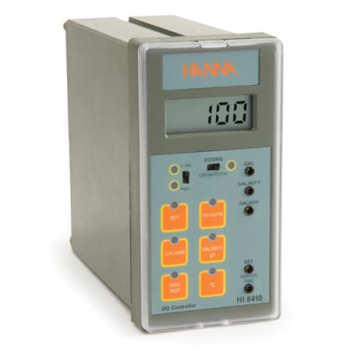 El HI8410 es un controlador de oxígeno disuelto montado en panel diseñado para simplificar el uso en una amplia gama de aplicaciones de procesos industriales. El oxígeno disuelto se indica en mg/L (ppm) o en % de saturación de acuerdo con el interruptor de selección en el panel posterior. La temperatura se puede medir en el rango de -5 a 50 °C. Las lecturas de oxígeno disuelto se compensan automáticamente por los efectos de la temperatura en la solubilidad del oxígeno y la permeabilidad de la membrana. Además, la función de compensación de salinidad permite la determinación del oxígeno disuelto incluso en aguas saladas.