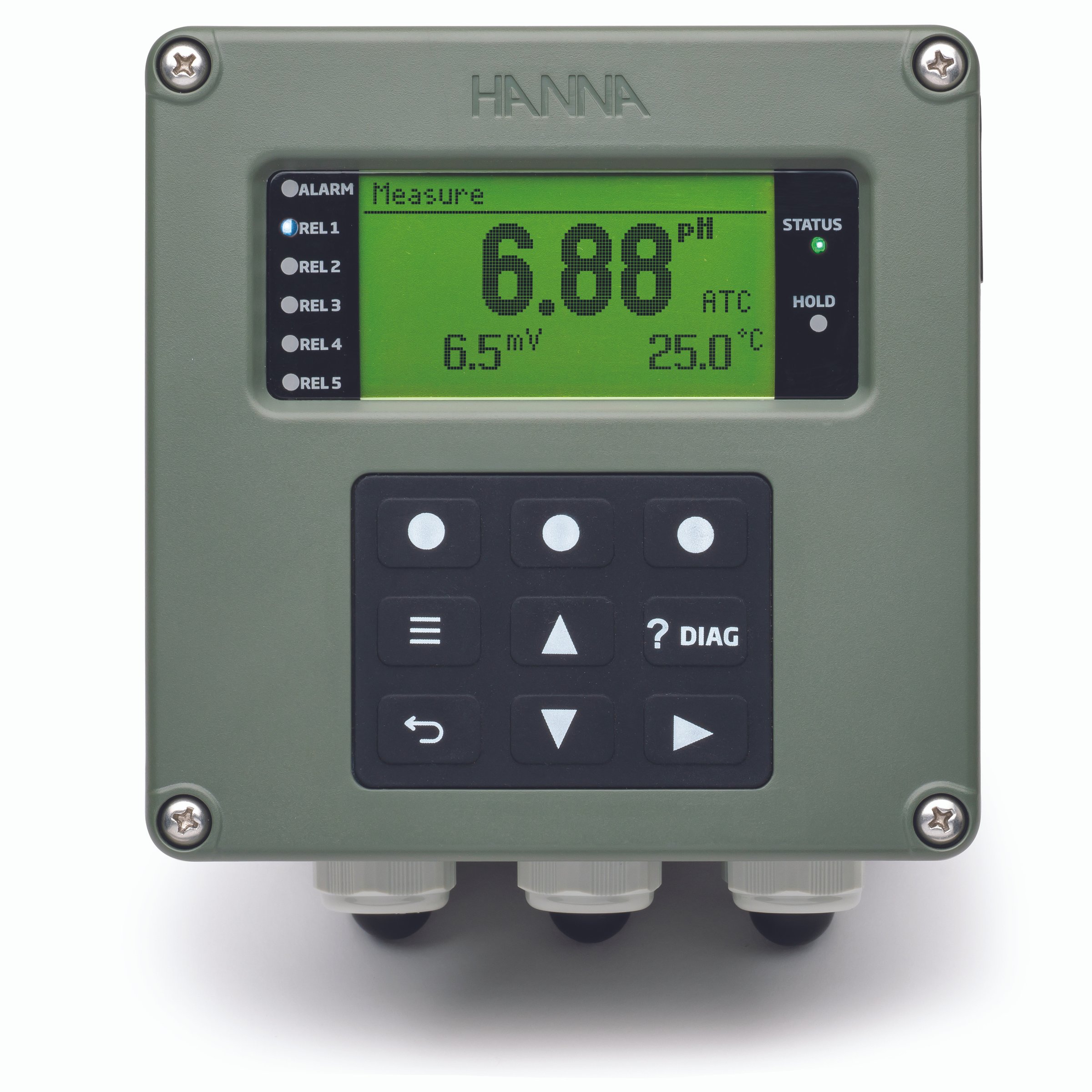 HI510 es un controlador de procesos universal avanzado que se puede configurar para muchas aplicaciones que requieren monitoreo y/o control de parámetros de proceso. Cuenta con una entrada de sonda digital que detectará y actualizará automáticamente el controlador con el parámetro que mide. Este controlador se puede configurar con hasta 5 relés de control y 4 salidas analógicas. Los relés de control se pueden programar para tipos de control encendido/apagado, proporcional o PID (proporcional integral derivativo) o usarse para programar secuencias de limpieza activadas por una entrada digital o basadas en un cronograma. Las salidas analógicas escalables se pueden utilizar para dispositivos remotos, incluidos registradores gráficos, PLC o SCADA. Las salidas analógicas se pueden utilizar para dispositivos de control, incluidas bombas dosificadoras y válvulas que aceptan una salida de 0/4-20 mA. HI510 cuenta con una salida digital RS485 que permite conectar hasta 32 dispositivos a una sola línea que se puede ver y programar. remotamente usando el software HI92500. El software HI92500 proporciona una interfaz gráfica de usuario que permite cambiar y guardar la configuración para transferirla a otro controlador HI510. El gabinete HI510 NEMA 4X utiliza prensaestopas sellados para mantener la integridad a prueba de agua. Los versátiles kits de montaje permiten montar el HI510 en una pared, tubería y panel.
