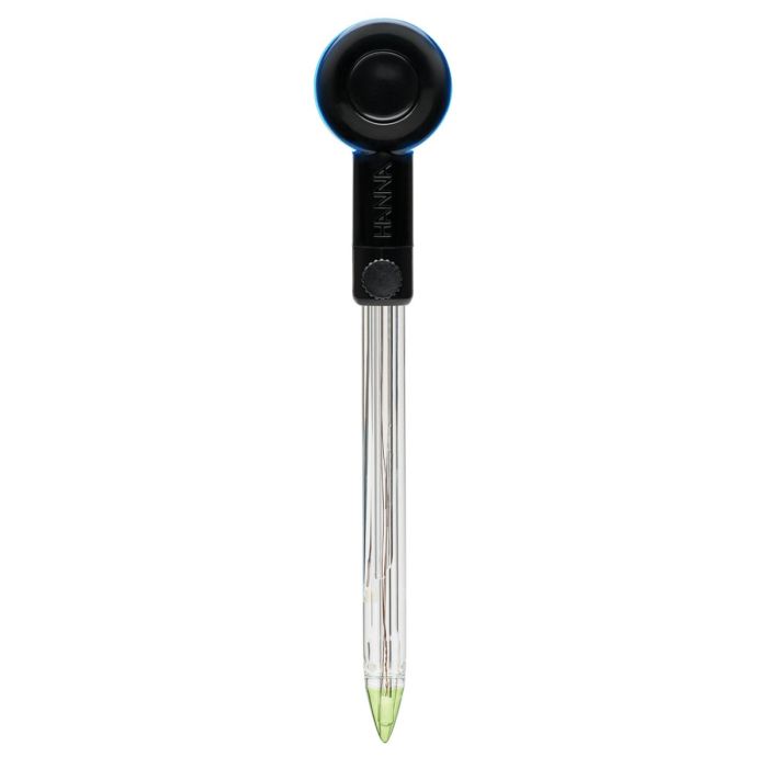 -Punta cónica de vidrio: El diseño de punta con forma cónica permite la penetración en sólidos, semisólidos y emulsiones. El HI12922 es ideal para la medición directa del pH en suelos y lodos de suelos.