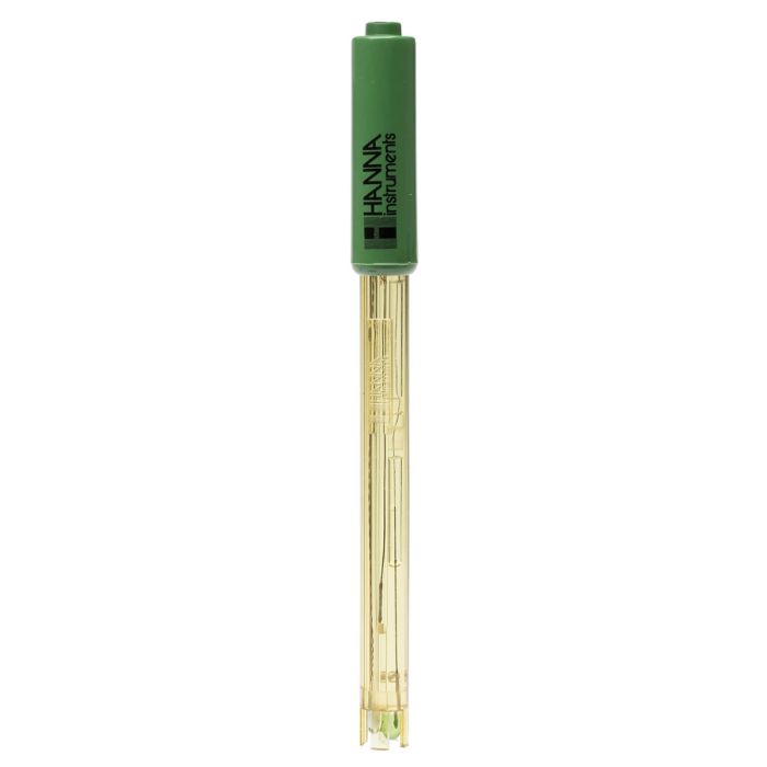 El HI12301 es un electrodo de pH con cuerpo de plástico, doble unión relleno de gel y un matching pin, que cuenta con un sensor de temperatura incorporado para mediciones con compensación de temperatura en un solo diseño de sonda. Esta sonda se conecta al medidor con un conector de 3.5 mm. El conector de 3.5 mm es propio de medidores que usan electrodos digitales.El matching pin integrado en el HI12301 es utilizado para el sensor Check™ del medidor de pH Edge. Esta característica se usa para identificar problemas con el electrodo de pH tales como grietas en el vidrio de detección o mal estado de la unión de referencia.El electrodo HI12301 presenta un microchip incorporado que almacena el tipo de sensor, el número de serie y la información de calibración.  También presenta una unión de cerámica simple y la porción esférica de detección de pH está hecha con vidrio para propósitos generales.  El electrodo tiene un cuerpo de PEI (polieterimida) resistente que tiene la resistencia química de un cuerpo de vidrio en un plástico irrompible, lo que lo hace ideal para aplicaciones de terreno e industriales.digital electrode