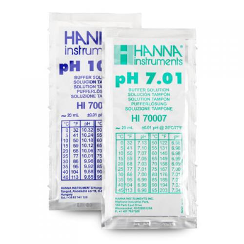 - Los buffers de Hanna están formulados especialmente para tener una larga vida útil para un sobre sin abrir.