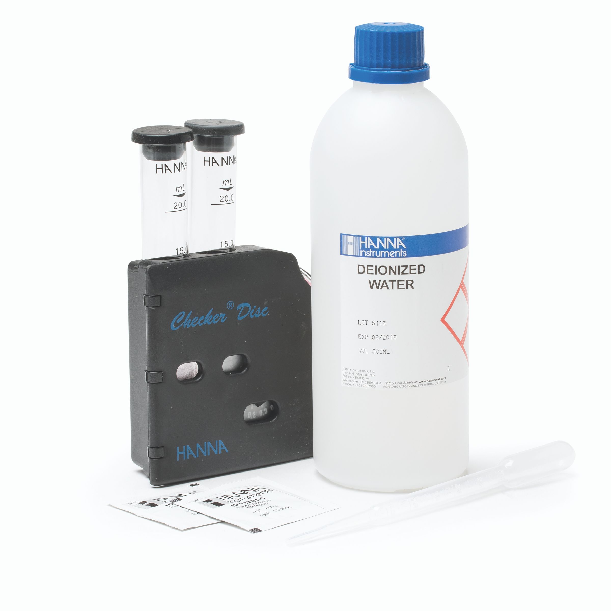El HI3875 es un kit de prueba química que determina la concentración de cloro libre dentro de un rango de 0.0 a 3.5 mg/L (ppm). El HI3875 se suministra con todos los reactivos y accesorios necesarios para realizar el análisis, incluido el disco Checker® para una determinación más precisa. El kit de prueba contiene suficientes reactivos para realizar aproximadamente 100 pruebas.