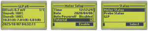 La función GLP (Buenas Prácticas de Laboratorio) permite almacenar y consultar información relacionada con la calibración de la sonda.