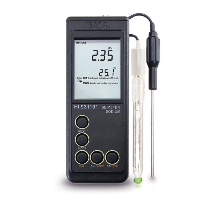 El HI931101 es un medidor de actividad y contenido de sodio portátil y resistente, diseñado para brindar precisión de laboratorio en condiciones difíciles. Este medidor es ideal para una variedad de aplicaciones en laboratorios, producción de alimentos y bebidas, y análisis de calidad del agua. El HI931101 ofrece una variedad de características que incluyen cinco rangos de medición distintos, calibración automática a 1 o 2 puntos, compensación de temperatura e instrucciones en pantalla.