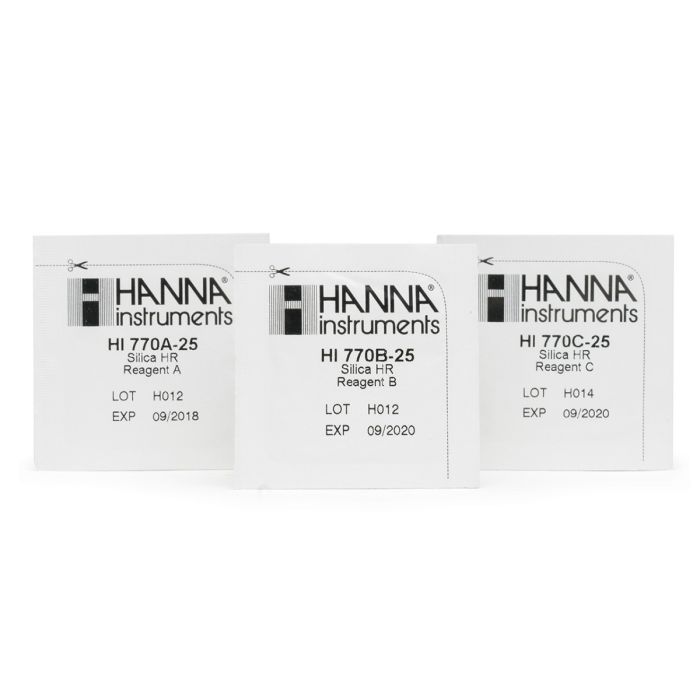 Los HI770-25 son los reactivos de reemplazo para el Checker® HC HI770 de sílice de Rango Alto. Estos reactivos de alta calidad se fabrican en nuestras instalaciones de última tecnología y están claramente marcados con el número de lote y la fecha de vencimiento en cada sobre para la trazabilidad.