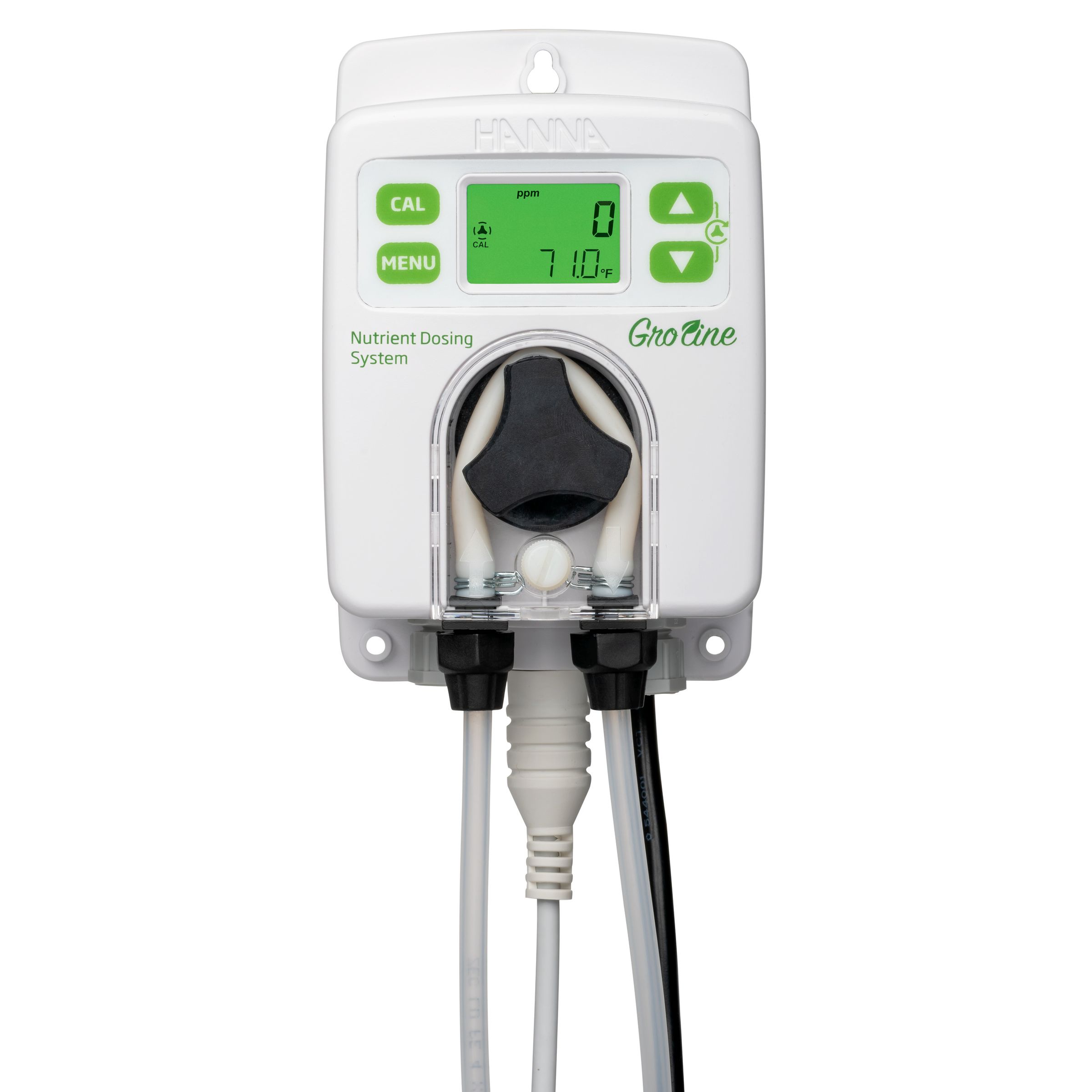 El Sistema de Dosificación de Nutrientes GroLine HI981413 es una solución completa con un controlador de proceso avanzado y una bomba dosificadora de productos químicos incorporada. Una solución diseñada y rentable para cultivadores hidropónicos o de invernadero para mantener el nivel ideal de concentración de solución de nutrientes en el tanque de reserva.