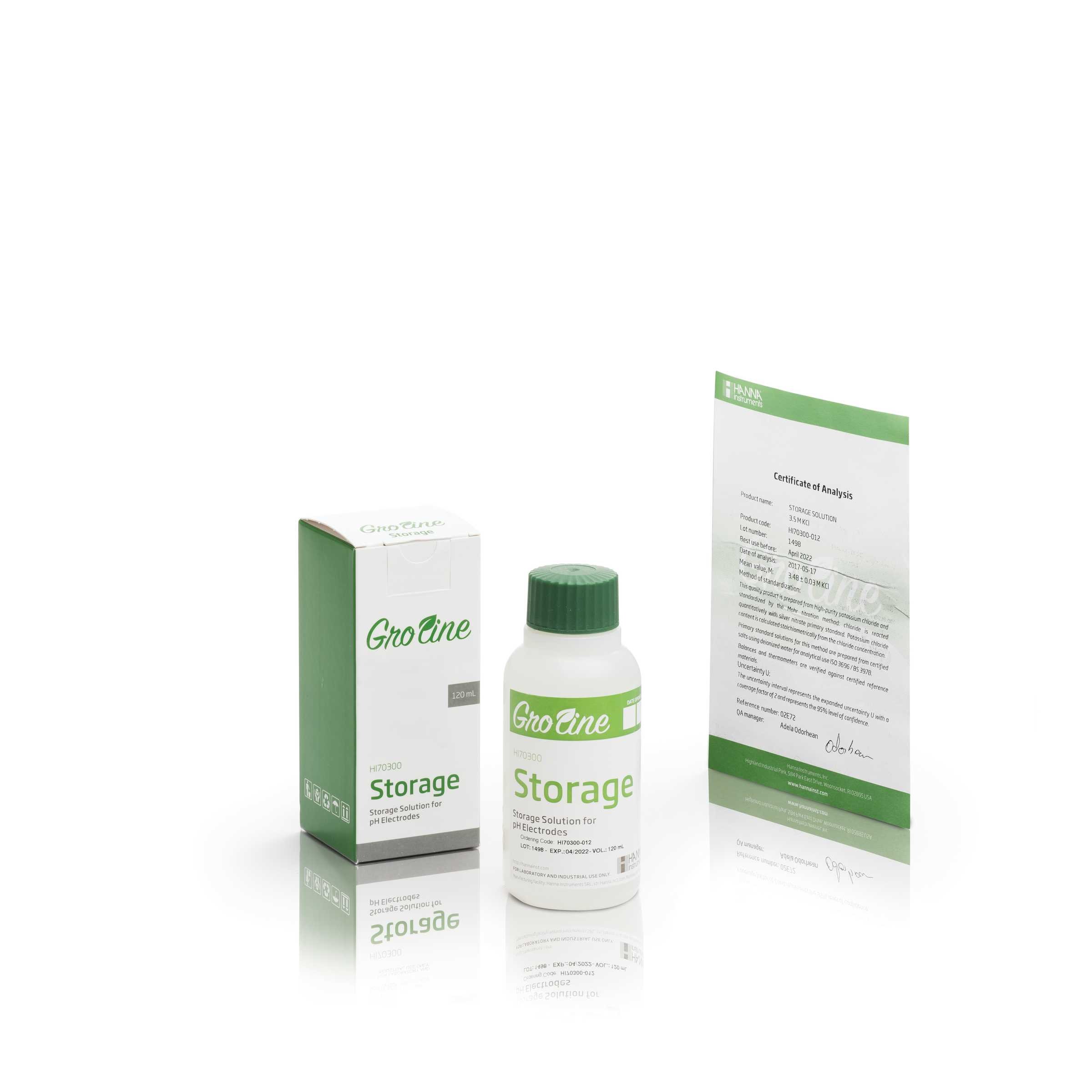 La solución de almacenamiento de Hanna Instruments está específicamente formulada para minimizar el crecimiento microbiano y evitar cualquier efecto de difusión / osmótico al almacenar una sonda en una solución con el electrolito de referencia interno altamente concentrado. El almacenamiento de sus electrodos de pH y / o ORP en una solución de almacenamiento mantiene limpia la unión, mantiene la capa hidratada del electrodo y limpia la unión para garantizar una medición rápida y confiable.