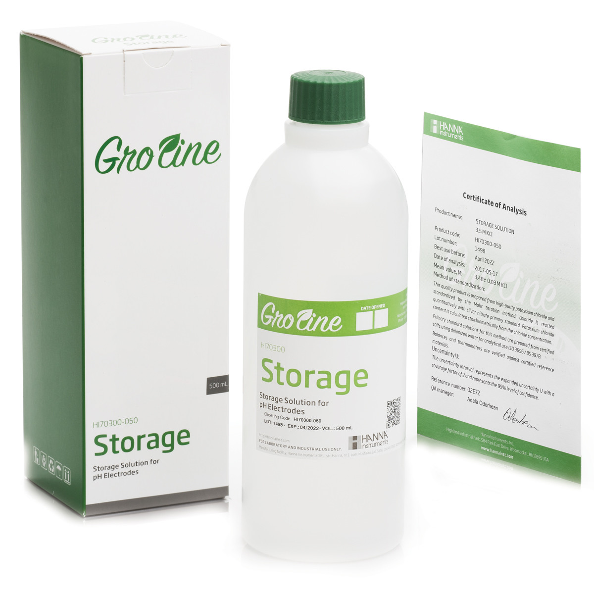 La HI70300L es una solución de almacenamiento preparada con productos químicos de grado reactivo que se pueden utilizar para garantizar un rendimiento óptimo de sus electrodos de pH y ORP. Es necesario almacenar un electrodo de pH en una solución para mantener hidratada la membrana de vidrio del electrodo de pH. Lo ideal sería utilizar una solución de almacenamiento. Nunca guarde un electrodo en agua destilada o desionizada. La solución de almacenamiento de Hanna Instruments está específicamente formulada para minimizar el crecimiento microbiano y evitar cualquier efecto de difusión / Osmótica al almacenar una sonda en una solución con el electrolito de referencia interno altamente concentrado. Almacenar sus electrodos de pH y / o ORP en una solución de almacenamiento también mantendrá limpia la unión. Mantener la capa hidratada y la unión limpia ayudará a garantizar una medición rápida y confiable. En el caso de limpiar su electrodo de pH en una de nuestras soluciones de limpieza, recomendamos remojar el electrodo en la solución de almacenamiento HI70300L durante al menos una hora antes de tomar medidas.