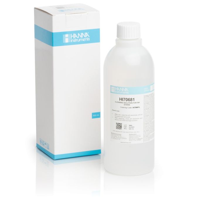 La serie de soluciones de limpieza garantiza la máxima eficiencia y precisión de sus sensores cuando se utiliza para la aplicación designada. La limpieza es una rutina rápida y efectiva que se debe realizar de manera regular como medida preventiva contra el uso de un electrodo sucio y para asegurar que la unión no esté obstruida. La HI70681L es una solución de limpieza hecha para aplicaciones donde los electrodos están cubiertos con manchas de tinta.