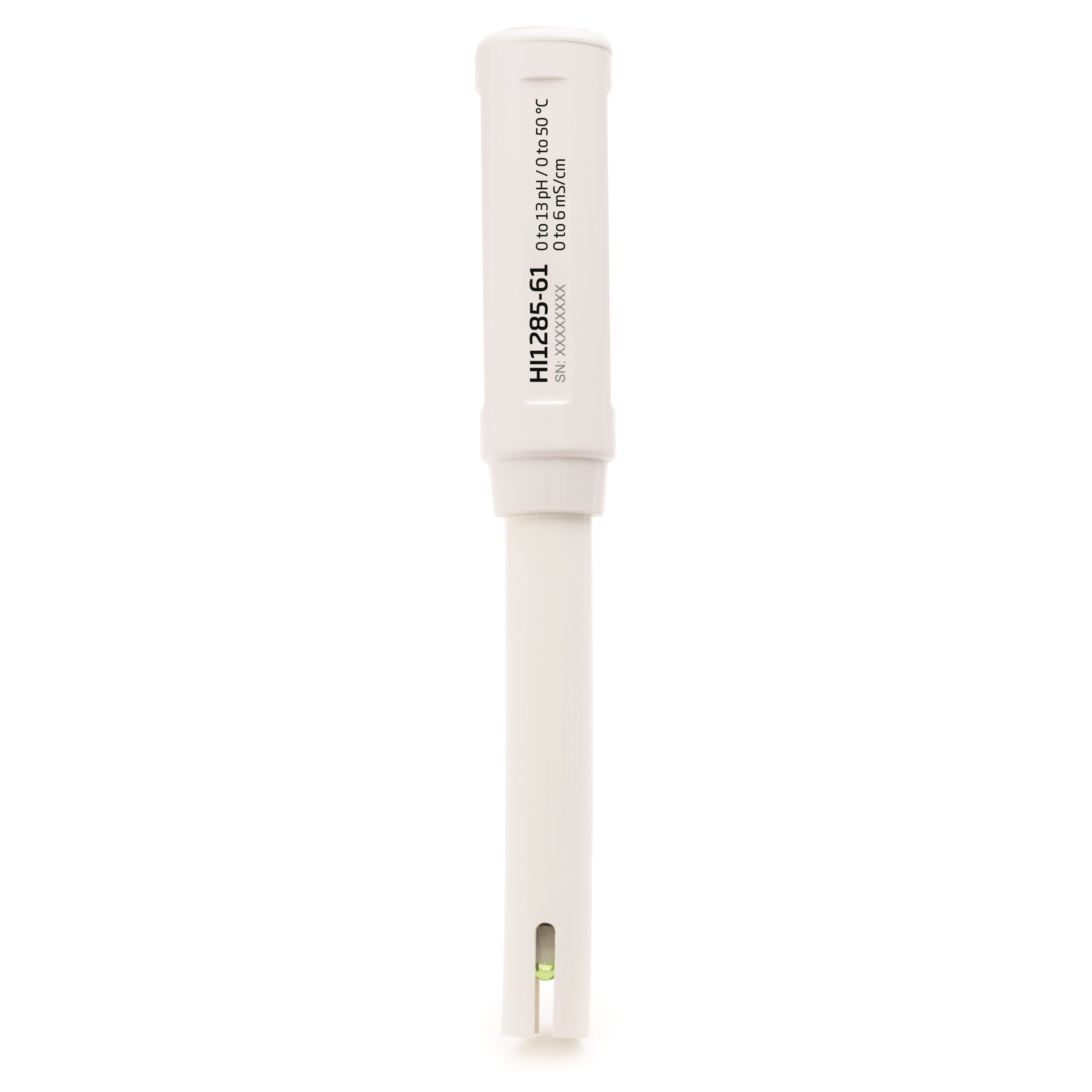 El cuerpo de polipropileno del HI1285-6 alberga los tres sensores dentro de un diseño robusto en un solo cuerpo. Este material es adecuado para una amplia gama de aplicaciones y sobresale en mediciones con medidores portátiles debido a su durabilidad. La protección alrededor del bulbo de vidrio esférico de pH minimiza la rotura debido a golpes o caídas accidentales del electrodo. El polipropileno es un plástico de alta calidad que es químicamente resistente a muchos productos químicos agresivos.