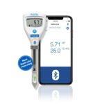• Carcasa compacta e impermeable y calibración automática de pH en hasta tres puntos, o cuatropuntos cuando se usa con la Aplicación Hanna Lab.