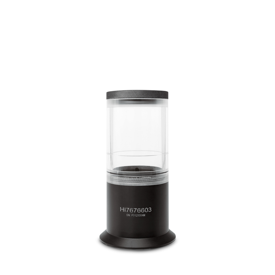 El vaso de calibración HI7676603 para sondas de turbidez de bajo rango puede utilizarse para calibrar la sonda HI7660-28 con estándares de formazina.